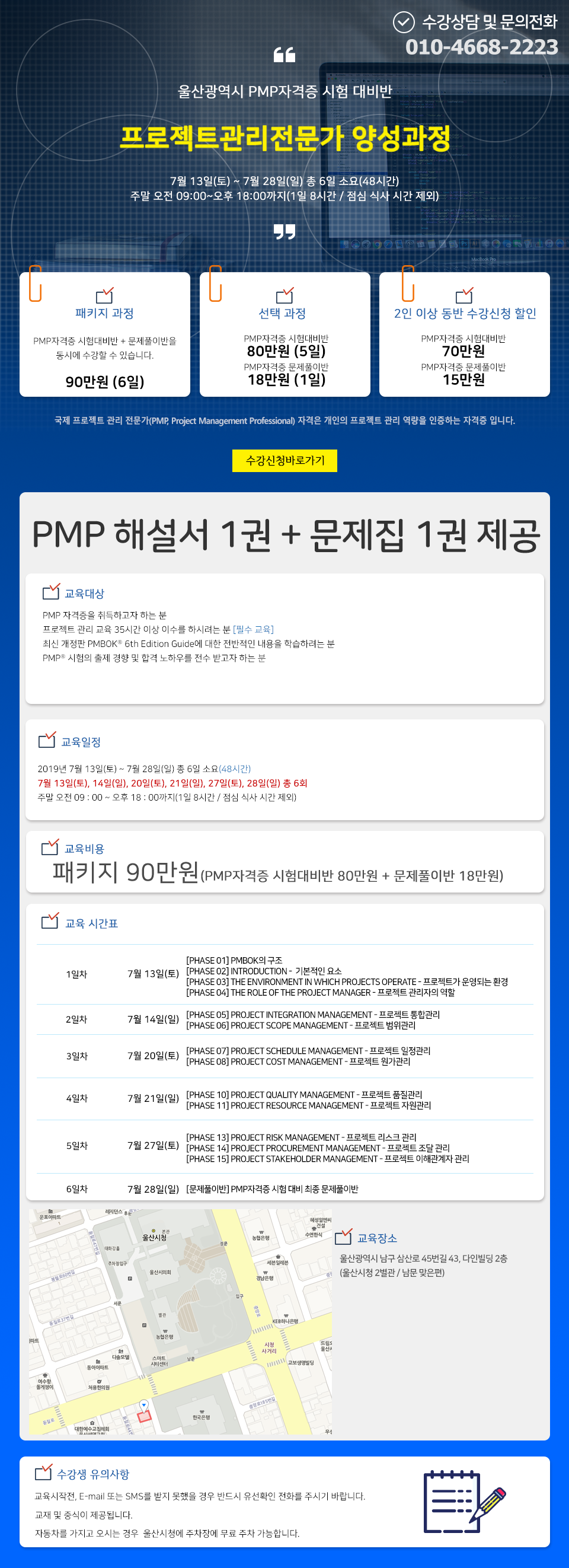 2019년 7월 울산광역시에서 프로젝트관리전문가 양성 과정이 개강합니다.