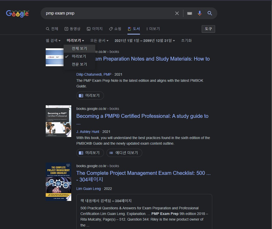 PMP 자격증 시험을 준비한다면 구글북스를 이용해 볼 것을 권장해 본다.