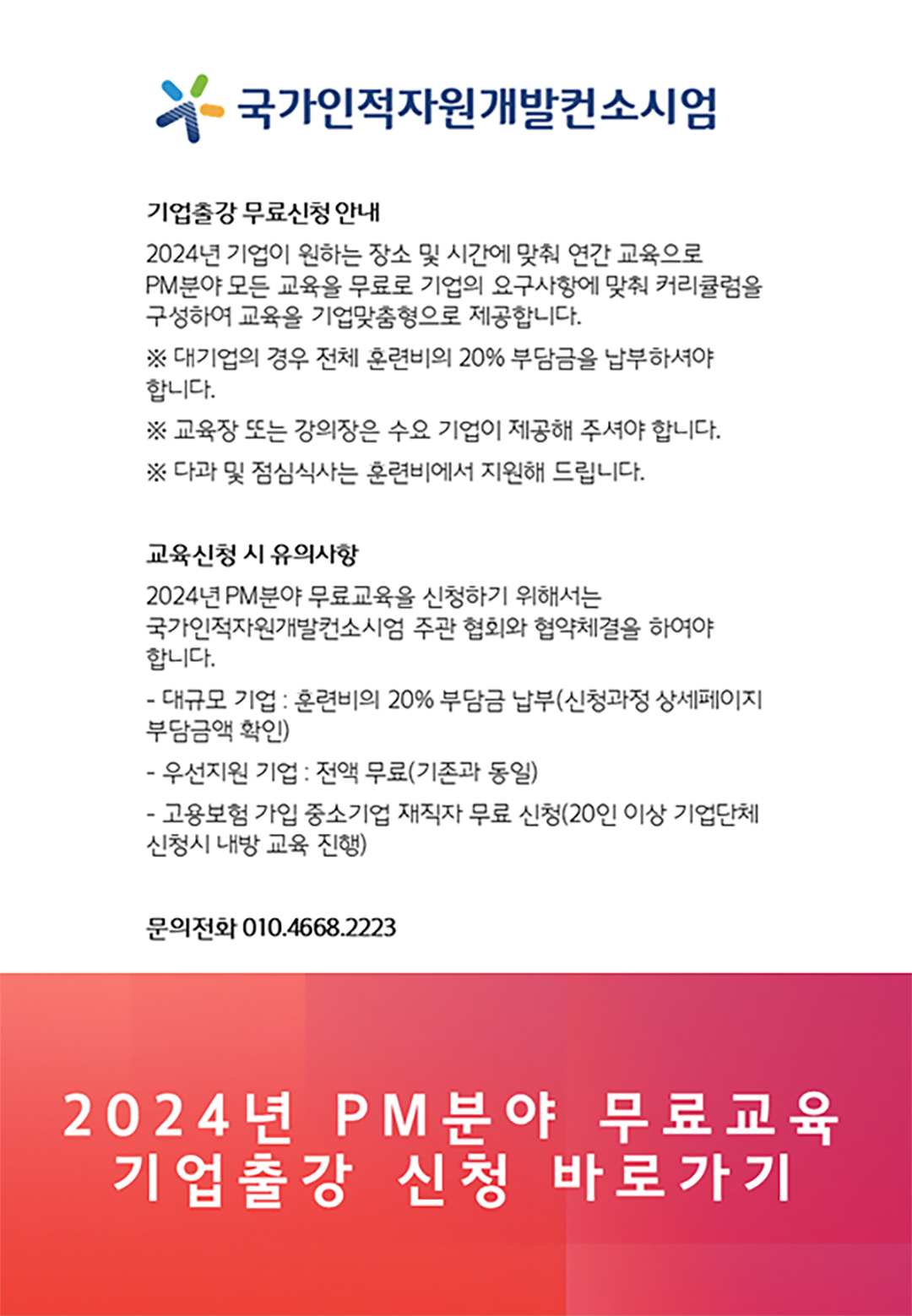 2024년도 국가인적자원개발건소시엄 기업출강 무료신청 안내