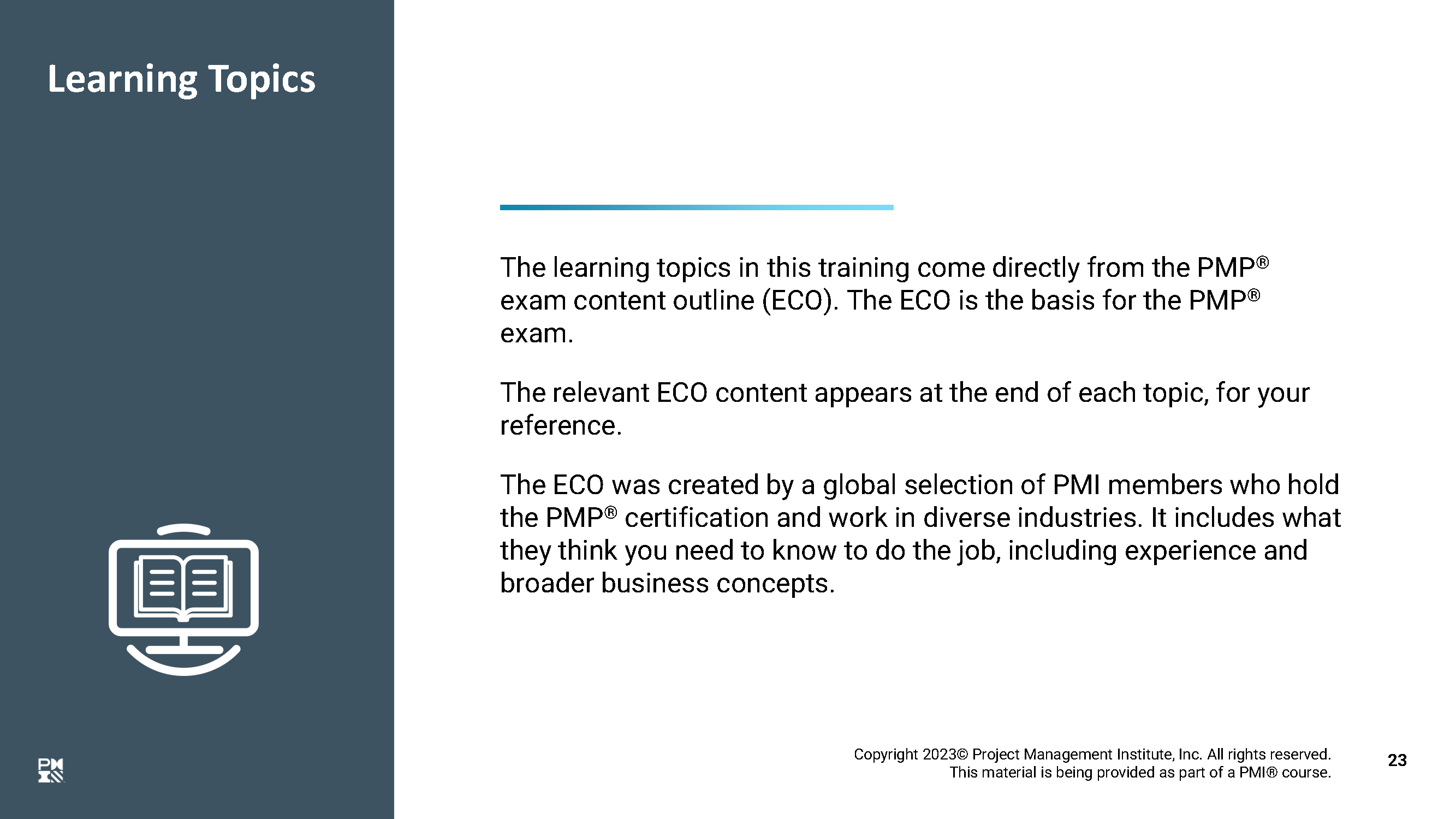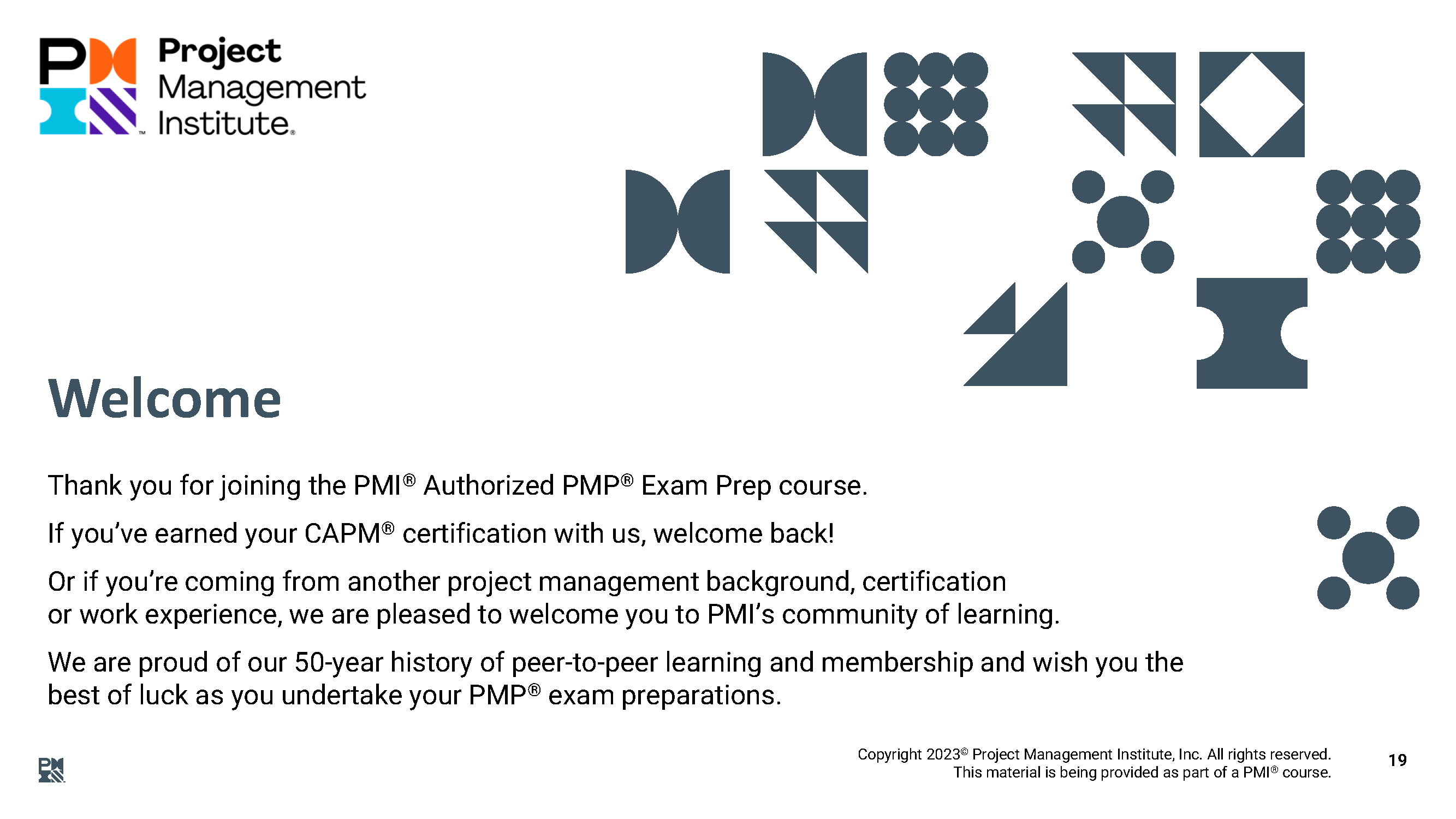 Thank you for joining the PMI® Authorized PMP® Exam Prep course.