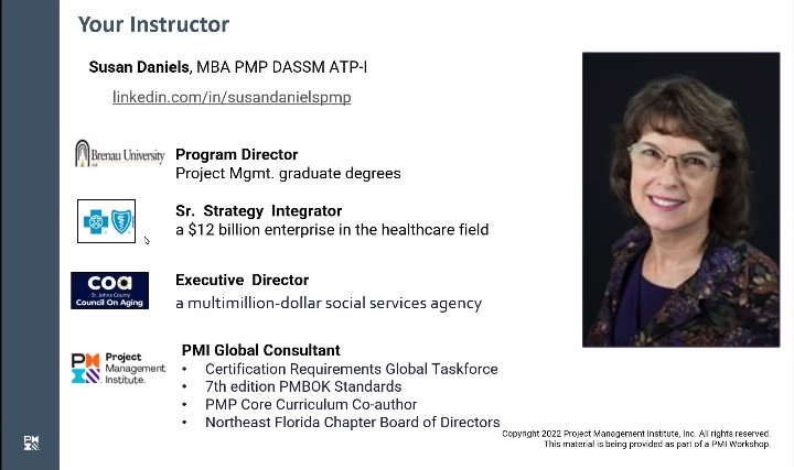 Project Management Professional (PMP) ATP Bootcamp: 8 Day UK Cohort 과정을 2023년 7월 25일부터 수강하고 있다. 처음에는 ZOOM으로 강의가 진행된다고 해서 학습이 어렵지 않을까 생각했다. 강사 수잔 다니엘스의 차분한 강의진행에 1차적으로 안도의 한숨을 한번 쉬고, 2차로 진행이 완료된 강의내용은 녹화하여 공유해 주고, 강의 자료 또한 깃허브를 통해 공유해 준다는 것이 가장 큰 매력으로 다가왔다.