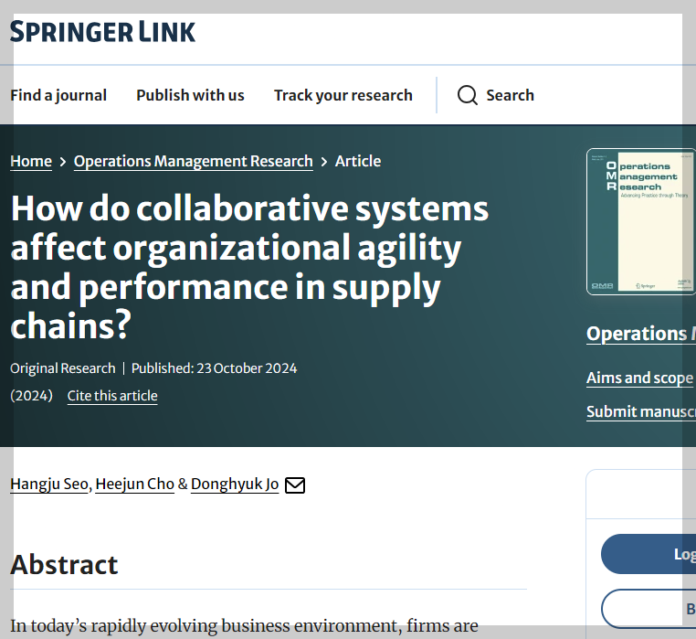 세계적인 국제 학술지 A등급인 Operations Management Research에 논문이 게재되었다. 영광이다.