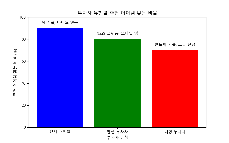 이 차트는 두 가지 창업 아이템에 대한 소비자 반응을 비교하고, AI가 추천하는 더 성공 가능성이 높은 아이템을 제시합니다.