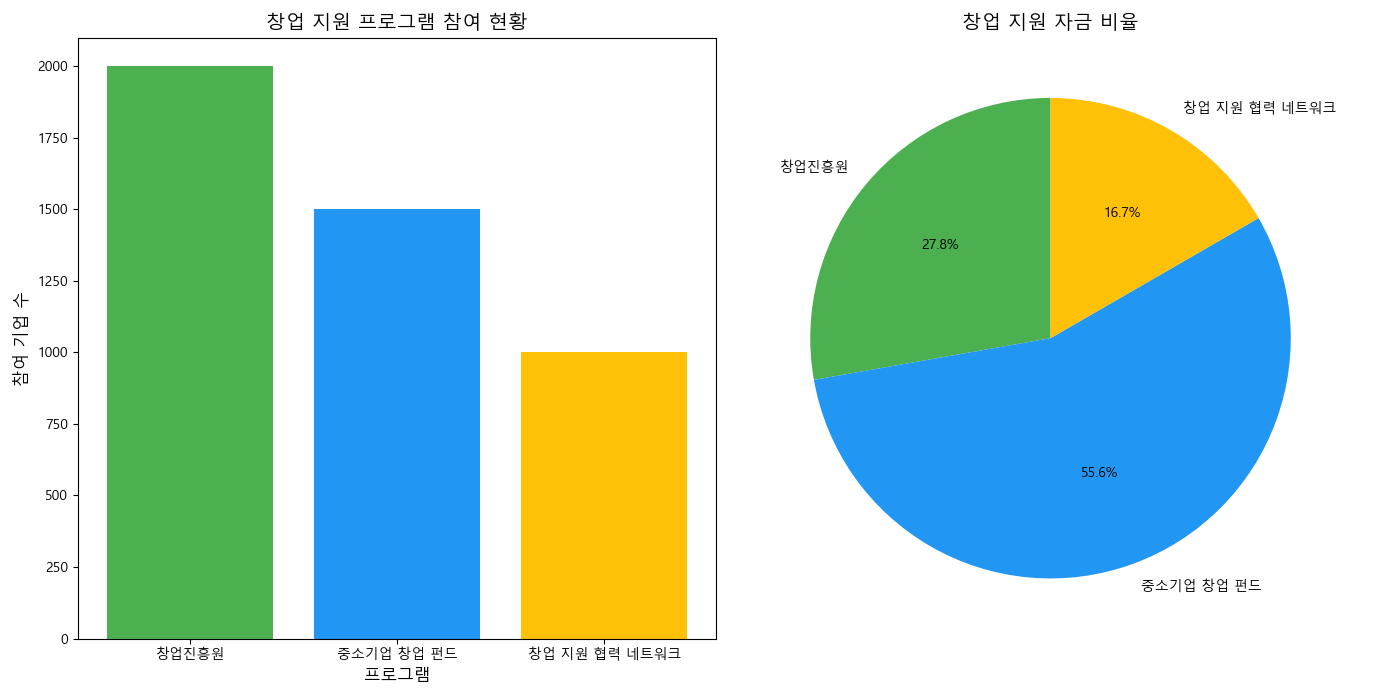 | 중소벤처기업부 | 창업자금, 창업 멘토링 및 교육 지원 | 800 | 창업 펀드, 창업 교육, 멘토링 지원 |