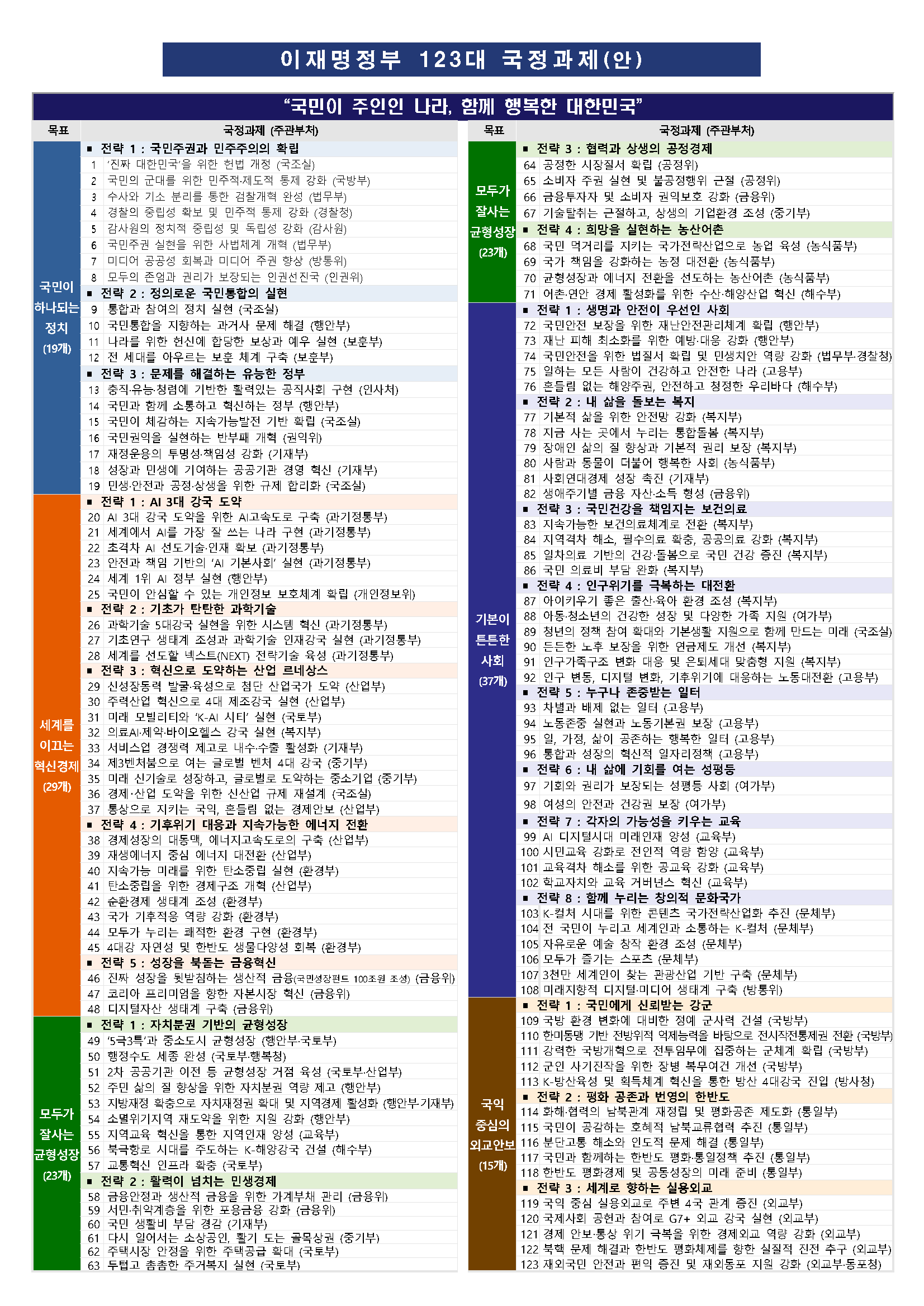 - 123대 국정과제 전체 목록